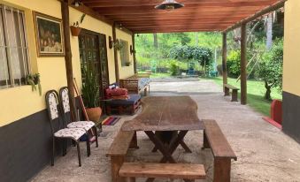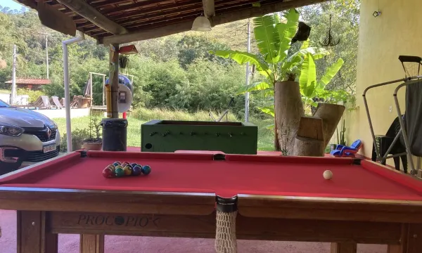 Come enjoy a calm environment, enjoy nature and sleep with the sound of birds. Sometimes it is possible to spot toucans visiting the farm for food. A sport fishing lake invites you to relax, as well as a hammock for those who just want to rest. But if you are in the mood for a barbecue with family and friends, we have a large space, consisting of rustic solid wood table, barbecue and wood stove, industrial stove. For the little ones we offer: scales, seesaw and sandbox. We can not forget the pool with sun loungers, waterfall and if you feel like swimming at night we have led lights.