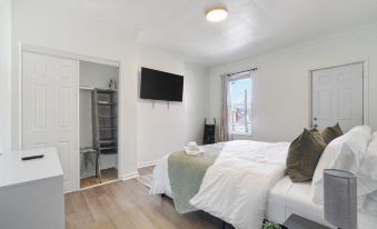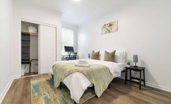 NOTE: This listing includes two separate units in a fourplex home: a 2-bedroom on the main floor and a 3-bedroom upstairs. Located 9 minutes from downtown, it features a modern design, two king beds, four queen beds, two bathrooms, a spacious living room with a 50” TV, fully equipped kitchens, and an office. Perfect for up to 12 to 14 guests.