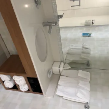 酒店非常乾淨舒適,衞浴裝修簡潔典雅,到處都乾乾淨淨的。衞生間與淋浴房分別獨立空間,方便,還有一個儲物間。有小的書桌、沙發空間,連續住幾天都不會感覺擁擠,很不錯,二天打掃一次房間,很好。前台姑娘小夥都很nice,早餐不錯,美式自助。
