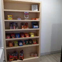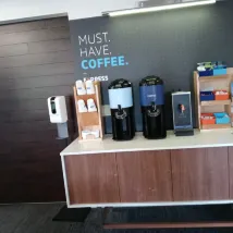Keurig coffee, a small kitchenette, 2 beds and a pullout couch bed. Clean room, nice bathroom. Everything worked good.