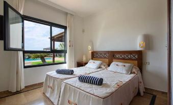 Luxury Villa fully equipped with toaster, sandwich maker, microwave, coffee maker, oven, hob, dishwasher, washing machine, double fridge, etc. High quality furniture, with marble flooring, satellite TV, DVD / CD with Dolby Surround, TV 29 "and another 21" in master bedroom, in addition the villa has free internet connection via WIFI.