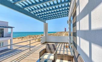 This booking gives you access to one 2 bed, 2 bath unit that has access just steps away to all outdoor amenities including pool, Jacuzzi, palapas, and beach of Six Palms Villas and is shared with the other 4 beach front villas.