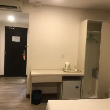 Spacious room, location is convenient with food shop and cafe around. Toilet, fridge and bed sheet can be a bit cleaner for comfort.