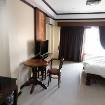 服務:服務態度很好,大約有3~4個前台輪換值班,基本上都會簡單的中文,實在聽不懂的也會用google translate與你友好交流。 環境:環境相對僻靜,酒店的院子很大,雖然緊貼國道,但是路上的車噪聲不是很明顯。泰國不允許在室內抽煙,每個房間都配有陽台,陽台上會放有煙灰缸。 衞生:衞生搞得還不錯,衹是陽台上爬蟲和壁虎比較多。如果受不了的話要告訴前台打掃房間時幫忙驅蟲。 設施:設施一般WiFi不怎麼好用,電視衹有差不多10套節目。有洗衣服務,但是要收費。有早餐可以買含早的訂單