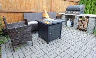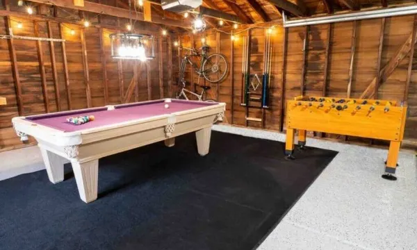 Step out to the patio for a hot tub, fire pit, and BBQ experience. In the back, a game room awaits with a pool table and foosball table for added fun
