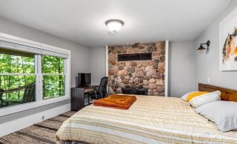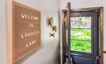 Come away to the woods! This secluded 5-bed lakefront retreat exudes rustic charm and unmatched privacy like no other. Envision a place of solitude nestled on a sprawling 0.53-acre lot, with 100 ft. of Loveless Lake shoreline at your footsteps, a private dock for spontaneous swims or fishing, plus a BBQ & a fireplace for evenings under a starlit sky. Inside, a 1650 sq. ft. interior awaits, complete with a smart HDTV, a vinyl record player & games for all around fun!