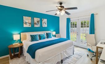 Our Master Bedroom is equipped with a private bathroom that includes a jacuzzi tub. The master has a comfy king-size bed, a large closet with an iron and ironing board, and black-out curtains if mornings are not your thing.