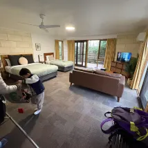 We had a fantastic stay at Loch Ard Motor Inn! The room was very spacious with one queen bed and a surprise extra single bed. We loved the balcony with a beautiful view of Port Campbell Bay. The location is super convenient, right across from restaurants and souvenir shops. The room was spotless, the hot water worked great, and there was even a heat light in the bathroom. The only small downside was that they only provided bath soap instead of shower gel, but overall, everything was perfect. Highly recommend!