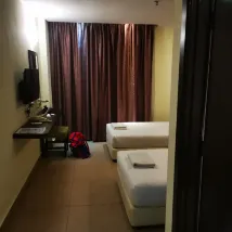 "The hotel location is consider quite near to town area which surrounds with seafood restaurant which within walking distance. However overall building outlook seems a bit dimmer. The room was spacious but not clean with spider web around. The staff at the front desk were helpful, especially the room door can not open due to technical problems. Bathroom only have rainfall shower head without hand held shower head, should improve on this.