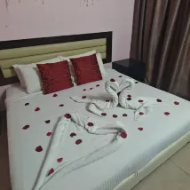 Good view and look good.Hotel look clean and good. Actually the king bed size is 2 single bed combined in one. Customer service good. Location also good.