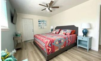 Our fully renovated home has a King bed, 2 twins +, 1 pull out Queen sofa bed) & features stainless steel appliances, quartz countertops, two patio areas, and a cozy fire pit in the backyard.