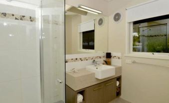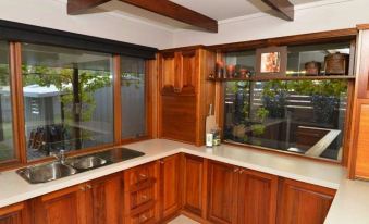 Bedding consists on 3 new queens sized beds. (Sleeps 6) Pillows and Duvet provided please bring your own linen and towels. Seperate games room/lounge TV in backyard entertainment room. Single renovated bathroom, please note laundry facilities are available in town if required.