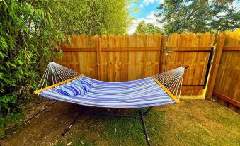 - Private outdoor lounge area with hammock and outdoor seating—ideal for morning coffee or unwinding in the evening