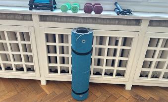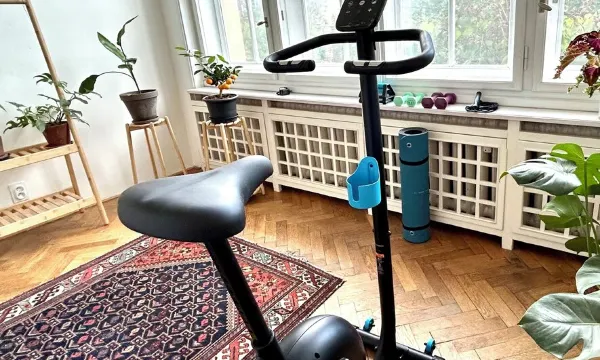 Winter garden with many plants and sports equipment provides unique recreational possibilities.