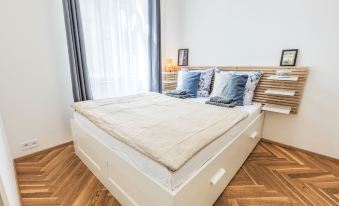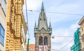 Very beautiful, historical residence "Nekazanka", 5 storeys. In the centre of Praha, in a central, busy position, 1.4 km from the river. In the house: lift, central heating system. Linen change (suppl. charge extra). Towel change (suppl. charge extra). Room cleaning on request (extra). Public parking extra. Shop, grocery, supermarket 100 m, shopping centre 500 m, restaurant, bar, café 100 m, pedestrian zone 200 m, tram "Jindřišská" 170 m, bus stop "Praha, ÚAN Florenc" 1.3 km, railway station "Praha, hlavní nádraží" 800 m, underground station "Můstek" 300 m, park "Riegerovy sady" 1.3 km, indoor swimming pool 1 km. Tennis, indoor tennis centre 700 m, minigolf 2 km, sports centre 700 m, children's playground 600 m. Nearby attractions: Václavské náměstí 400 m, Orloj, Staroměstské náměstí 700 m, Karlův most 1600 km, Pražský hrad, Petřínská rozhledna 3 km, Zoo 7 km, Vyšehrad 3 m, Karlštejn 30 km, Křivoklát 50 km. Well-known lakes can easily be reached: vodní nádrž Džbán 10 km, Hostivařská přehrada 13 km, Velká Amerika 33 km. Hiking paths: Stromovka 4 km, Prokopské údolí 9 km, Divoká Šárka 11 km. 2-room apartment 48 m2 on 2nd floor. Bright, fully renovated, very beautiful and modern furnishings: entrance hall. Living/dining room with 1 double sofabed, dining table and TV. 1 room with 1 double bed. Small gallery with 2 sleeping facilities. Kitchenette (oven, 2 induction hot plates, toaster, kettle, microwave, freezer, electric coffee machine). Shower/WC. Facilities: washing machine, baby cot, hair dryer. Internet (WiFi, free). Please note: suitable for families apartment courtyard side. Non-smokers only. Maximum 1 pet/ dog allowed. Smoke alarm, fire extinguisher. Instead of an enclosed bedroom, some sleeping areas are located in an open-plan area (gallery, alcove, etc.).