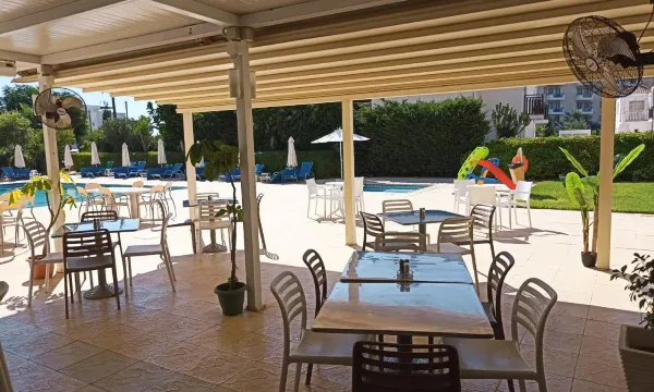 Nice family run apartments in a good location. We had a 1 bedroom apartment which had a sofa bed in the lounge kitchen area and 2 single beds in the bedroom. It was late when we arrived and very hot. We did not realise that air conditioning was not included in the booking. We purchased the air conditioning the next day at a charge of €5 per unit per day. We decided on just the one unit in the bedroom. We used to leave the bedroom door open so that it also cooled the other room. The rooms are dated but clean and has all you need. The only issue we had with the room was the sofa bed was old and when my daughter turned over it sounded like it was about to collapse. I mentioned to reception and they set up a camp bed which was much better. The other beds were comfortable and had a thick mattress topper which helped. There was no spare pillows you only had 1 pillow per bed and they were very flat I did ask for more and was given 2 cushions without covers and 1 pillow. It also had a 2 ring pan hob and a 2 slice toaster and kettle, pots and pans there are no plugs in any of the sinks so washing up was difficult. The balcony was small and had a small round table and 2 plastic chairs. The staff all friendly and the hotel clean. The pool is nice and had enough beds for all at the time we visited. Some sunbeds had blue cushions which when you suffer with back issues are a god send but they do not have enough for all beds. I noticed people were taking them back to their rooms which was really annoying especially when they would only be at the pool for around 1-2 hours then take them back to their rooms so no one else could use. I did mention this to the staff who said they were regular visitors so it was ok!! It would be much better if the staff told them to leave them for others but kept 2 back each morning for them then once they had used them others could benefit or just get enough to cover all beds. There is also a lot of beds already got towels down but not actually used until later in the day which wasn’t an issue as still able to get a bed but in the high season would be an issue. The pool bar does play some music all day but not loud and is quite relaxing. There is also a baby pool. There is a sign that says only food and drink purchased at the hotel can be consumed round the pool but you could take your own drinks and nothing was said. It’s situated about 10-15 minutes from Protaras main stripe and about the same to Pernera. It does have a car park and tennis courts. I would return here as in a good position and good value for money. The staff are friendly and will try and rectify any issues quickly.