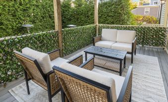 戶外露台位於酒館的露天座位區上方,因此當顧客在戶外用餐、飲酒和吸菸時可能會有噪音。這是一個非常熱鬧的街區,經常舉辦各種活動。主幹道上的停車位非常緊張。您可能無法在建築物正前方找到停車位,通常需要停在附近的街道上。