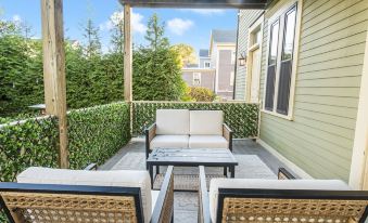 公寓內配備大型疊式洗衣機和烘乾機,供顧客使用。主臥外設有寬敞的戶外露台,您可以在這裡用餐、小酌,感受社區的熱鬧氛圍。