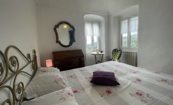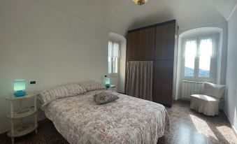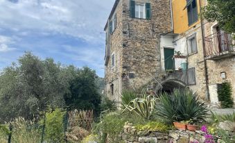 Beautiful, rustic 2-family house "Casa Ferrando", 2 storeys, renovated in 2022. In the centre of Torrazza 7 km from the centre of Imperia Porto Maurizio, in a sunny, elevated position, 7 km from the sea. 50 m stepped path to the house. Public car park at 200 m. Grocery 7 km, supermarket 7 km, restaurant 7 km, bar 7 km, bakery 7 km, café 7 km, bicycle rental 7 km, bus stop 200 m, sandy beach 7 km pebble beach 7 km. Riding stable 3 km, cycle lane 7 km. Hiking paths: Monte Faudo (1000 m) 15 km. Please note: car recommended. 3-room penthouse 80 m2 on 2 levels on 1st floor. Beautiful and cosy furnishings: 2 rooms, each room with 1 double bed (1 x 160 cm, length 200 cm). Kitchen-/living room (oven, dishwasher, Gas stove, 4 gas rings, toaster, kettle, freezer, electric coffee machine) with dining table, 1 bed (80 cm). Shower/bidet/WC. Gas heating. Heating available only from 30.10. to 30.04. Upper floor: living room with panoramic window with dining table. Exit to the terrace. Sep. WC. Terrace 20 m2, roofed. Terrace furniture. Panoramic view of the sea and the countryside. Facilities: washing machine, children's high chair, baby cot, hair dryer. Internet (WiFi). Maximum 1 pet/ dog allowed. IT008031C2MEOGIKW3