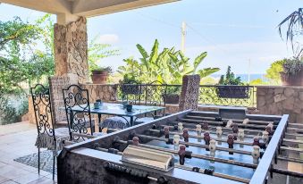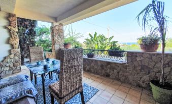 2-family house "Zuccheri Canditi". In the hamlet Brucoli, 4.5 km from the centre of Augusta, 35 km from the centre of Siracusa, in a quiet, sunny position, 700 m from the sea, 700 m from the beach. Private: property 600 m2 (fenced), garden with lawn and wildlife garden. Garden furniture. In the house: table football. Cook on request (extra). Public parking 10 m on the road. Grocery, supermarket, restaurant 500 m, bus stop 7 km, sandy beach "Brucoli" 700 m (small) pebble beach "Arcile" 6 km. Nearby attractions: Necropoli di Pantalica 30 km, Catania 40 km, Avola 50 km, Noto 60 km. Well-known ski regions can easily be reached: Etna Sud Punto partenze Rifugio Sapienza 55 km. Hiking paths: Riserva Naturale Laghetti del Cassibile 63 km, Riserva Faunistica di Vendicari 65 km. Please note: car recommended. The owner lives in the same residence. The owner has a dog. 4-room semi-detached house 150 m2, on the ground floor. Comfortable and tasteful furnishings: living/dining room with air conditioning and forced-air heating. Exit to the garden. 1 double bedroom with shower/bidet/WC and air conditioning. Exit to the garden. 1 double bedroom with air conditioning. Exit to the terrace. 1 room with 1 bed, 1 pull-out bed and air conditioning. Kitchenette (mini-oven, dishwasher, 2 gas rings, toaster, kettle, microwave, electric coffee machine). Bath/bidet/WC, shower/bidet/WC, sep. WC. Heating, forced-air heating. Heating available only from 01.12. to 31.03. Parquet floors, carpet. Balcony 8 m2, terrace 24 m2, roofed. Terrace furniture, barbecue. Panoramic view of the sea and the garden. Facilities: washing machine, safe, iron, children's high chair, baby cot for up to 2 year olds (extra), hair dryer. Internet (WiFi, free). Please note: smoke alarm, fire extinguisher. IT089001C2LT8AWL3A