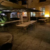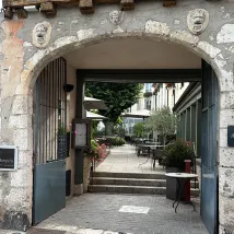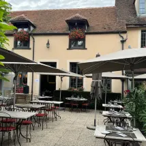 Un très bon repas en terrasse dans un cadre médiéval bucolique Les enfants ont profité du calme de la terrasse au milieu de la végétation sur fond de bâtiments médiéval Service attentionné et efficace Une bonne étape, détente et convivialité. Très bonne cuisine française et bonne sélection de vins.