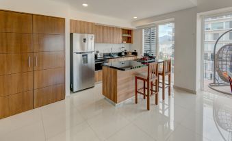 Live the pleasure of watching the sunset, enjoying your favorite drink in the Roof Garden on the 13th floor of this beautiful condominium, do not interrupt your daily routine to get in shape, here early in the morning, you can take advantage of the Zoho Skies gym, and then recover your energies in our beautiful pool, with a paradisiacal view of the bay and the mountains! Feel safe and relaxed if you come in your car since we have parking for your car, relax yourself because we have security 24/ 7 in our condo.
