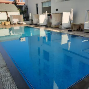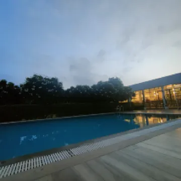 Hôtel très bien, moderne avec une magnifique chambre, équipée d’un joli coin salon. Grande salle de bains avec tout le nécessaire. Le seul point faible est la restauration. Il y a 2 restaurants, et au dîner le soir, c’est soit le restaurant indien végétarien, soit le restaurant Italien, végétarien aussi; donc pas de viande ! La salle indienne qui sert le petit-déjeuner est très joliment décorée. Le matin c’est aussi végétarien, il n’y aura pas d’œufs, ni de charcuterie indienne. C’est bien dommage, surtout qu’il y avait des frites, et c’était bien la 1ère fois que je pouvais manger des frites au petit-déjeuner. Nous n'avons pas essayé la piscine.