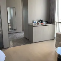 酒店很新,2024年剛建的,全家出行很不錯的一次體驗~ 設施:空調很涼快,廚衞俱全,房間還配有寫字桌、沙發、冰箱和小圓桌,太讚了。一樓大堂有快遞收發點和外賣機器人,十分方便~ 衞生:乾淨整潔,沒看到灰塵~ 環境:周圍環境很好~ 服務:工作人員非常專業,也很熱情周到。