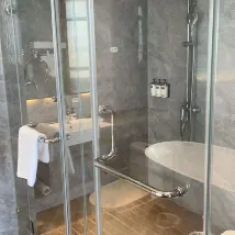 國慶出遊預訂的酒店,中途變更了日期,酒店確認訂單很迅速,放心入住,入住時間正好是中秋節當天,帶了小朋友,前台小姐姐還給了伴手禮,預訂的高層雙層,帶孩子太方便了兩個床可以拼在一起變成大床,房間還帶衣帽間,雙台盆,有贈送浴缸套孩子還沒到海邊就想先體驗一下玩水的快樂