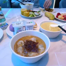 真是讓人驚喜的酒店,剛到前台,工作人員服務熱情,馬上遞上了熱茶,太貼心了!房間簡約輕奢,娃很喜歡這裏,一進門就有智能小度,還有送餐的機器人,早飯很豐富,有喜歡的流心煎蛋、大蝦🍜、各種飲品。青島這個季節來很舒服的,大愛❤大愛