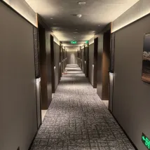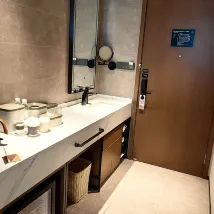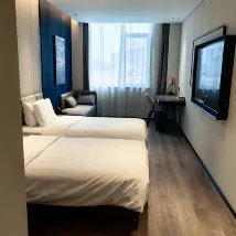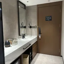 房間很乾凈,樓下就是洗衣房,健身房,很方便,晚上9點半到11點半有夜宵粥這樣的,可以給娃吃點墊墊肚子,前台的工作人員都很客氣且高效解決問題,娃的拖鞋沒有,打電話給前台,馬上就讓機器人送上來解決了,對比我住的山港凱悦大酒店,半小時小朋友的一次性拖鞋都沒送上來,還要再次打電話催
