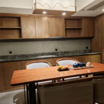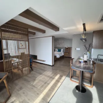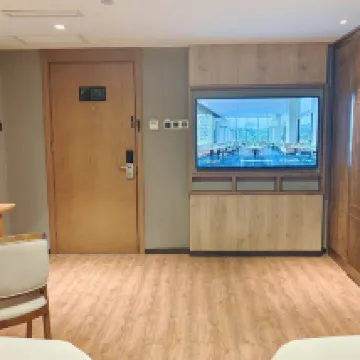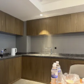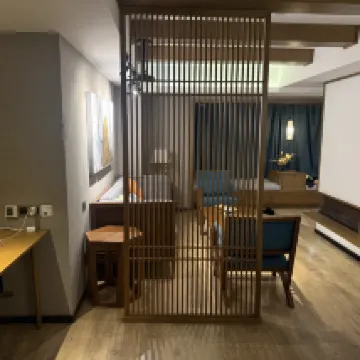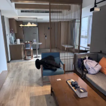 酒店房間設計得挺温馨的,衞生間和洗浴間是分開的,很方便。比起智能馬桶,感覺酒店的常規型抽水馬桶更親民,更實用,帶了一個暖暖的馬桶蓋,正好和酒店的抽水馬桶很契合。主卧室的室內燈💡很有特色,還有寫字枱和枱燈,電視也很給力,老爸愛看央視新聞和體育頻道,每天都可以看到噢。我的榻榻米缺了一個與卧室一樣的枱燈,索性把主卧室的枱燈移花接木到我的榻榻米旁邊的一個很特別的小床頭櫃上啦。酒店的窗簾是智能噠,但是房間和客廳都有可以打開的窗户,每天新的空氣都可以流通進來。酒店的工作人員都很盡職盡責,還有下午茶的區域和喝茶看書的角落,似乎還有健身房。索性續住了兩個晚上!希望酒店再接再厲噢!酒店邊上的超市不止一家呢,特別的方便!