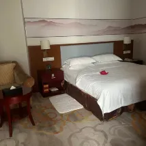 房間很乾凈,環境很好,設施設備齊全,前台工作人員特別好,去之前還給打電話諮詢了入住時有沒有特別要求,還給免費升級了房間,入住的時候房間內歡迎水果,退房時還送了伴手禮,體驗感非常好,值得推薦!