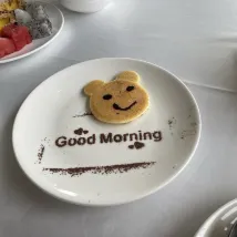酒店地理位置不錯,出酒店過馬路就是海,不是沙灘,是一個石階的那種岸邊。打車15分鐘左右到金沙灘。不過酒店環境很好,設施維護的還很新。這次國慶趕上四天都在下雨,所以外出遊玩很少,孩子在酒店的泳池玩得也很開心。贈送的早餐也讓人感覺很温馨體貼,總機ruby服務很周到,很熱情。給安排的兩間1805和1836都在同一層。在公共假期出行還是非常推薦黃島,比青島本島更有度假愜意感,人少景美,物價也比本島性價比高很多。
