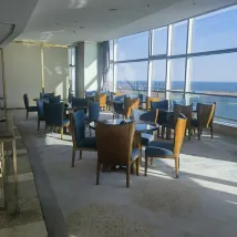 該酒店所在位置面對大海,景色很美。酒店附近有許多美食可供選擇。酒店大廳寬敞明亮。前台服務人員:周洋服務熱情主動,業務熟練,工作效率很高。保潔人員:張春紅愛崗敬業,工作兢兢業業一絲不苟,李瑞芳也認真負責。行政酒廊服務人員:王娜服務熱情主動。酒廊的下午茶和晚上的簡餐花樣不少,味道也不錯,對糖尿病患者和體重控制管理人員的需求均有考慮。但細節把控稍微欠缺,例如:所有的食品均沒有明示的標牌,肉不知是豬肉、羊肉還是牛肉?幾乎每個客人都要問一遍是什麼肉?服務人員不厭其煩的回覆客人,有時服務人員也不知道是什麼肉?還需要去問後廚確認後才能回覆客人。建議去一樓早餐廳去觀摩學習一下。酒店客房部服務人員:王衞紅工作熱情很高,對老年人非常關懷,親和力很強,服務熱情周到,對顧客的需求快速的給予解決。酒店早餐廳花樣很多,食品標誌明顯便於客人取用。中餐廳秦香閣菜品花樣很多,菜品的味道也不錯。該酒店服務非常細緻貼心,得知入住期間正好是我的生日,特意給我送來生日蛋糕送來了祝福。給了我一個驚喜 讓我感到非常的温暖。酒店房間裏設施設備基本齊全,相信酒店一定能再接再厲更好的給客户提供更優質的服務。