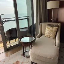 因為是一落訂就無法取消所以猶豫了,以致沒訂到豪華閣海景房,無奈衹能訂了溢價後的陽台海景房。 因為房間不是正面對海,所以景色一般。 牙刷的質量有點太差了,雖説是一次性用品,但我剛開始用就一個勁的掉毛,還特別硬。 酒店服務還是很好的,尤其是泳池的工作人員👍