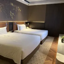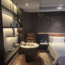 打開房門很驚艷,空間大,設施齊全,有豪華沙發和辦公桌椅、化粧間,配備智能家居和智能馬桶,床具很舒適,窗簾遮光效果不錯,有助深度睡眠,衞生打掃也很乾凈 酒店服務人員態度熱情,入住和退房時都主動幫忙拿行李,送到車上,很贊