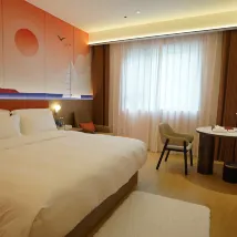 房間乾淨衞生,服務周到細緻。特別是國慶中秋期間定的大床房還能附帶自助早餐 午餐 中餐和夜宵,不想在外邊用餐的話酒店內就都解決了。房間還有小度控制的智能家居,家人非常滿意。開始擔心房間有煙味 ,進行了標註,服務人員細心提前開窗通風沒聞到異味。入住時前台贈送了小禮物,包括零食和果盤很好。幾點建議:房間沒有冰箱,也可能沒找到 ,外面熱不是很方便。沒有毛巾掛架和衣櫃,如果能有配置就更好了。