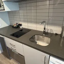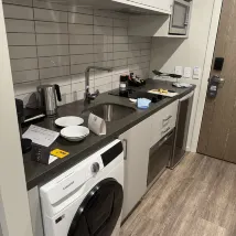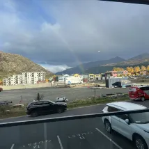 屋內設施齊全,洗衣乾衣一體機,廚房鍋碗瓢盆、冰箱、微波爐、洗碗機齊全。酒店每天送一瓶牛奶,每天打掃,服務好。窗外就是雪山,景色好。門口有公交車去機場。附近有大型超市,很便利,值得推薦