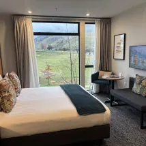 就在機場旁邊,離取車和還車的地方很近。但是離皇后鎮有點距離,自己開車需要20分鐘。皇后鎮真的很一般,但這個酒店可以作為一個好的歇腳點,例如坐飛機前睡一晚。蠻不錯的!