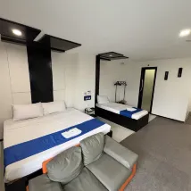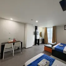 飯店住宿點評 我和四個兄弟姊妹住在這家飯店。起初,我預訂了一間雙人高級房,因為我預計只有一個兄弟姐妹會來。然而,計劃有變,我們四個人最後都來了。上午11點左右到達飯店時,我到前台要求升等到可容納五人的房間。前台告訴我沒有這樣的房間了,於是我同意預訂額外的套房(二號套房),可以再容納三人。 我很感激飯店把兩個房間安排在一起——這週到的安排讓我和妹妹更容易照顧我們三個十幾歲的兄弟姐妹。 我們知道入住時間是下午2點,所以我們願意等。由於當時是假期(四旬齋期間),附近的大多數場所,例如商場,都關門了。前台起初鼓勵我們出去逛逛,但我委婉地提醒他們,現在是假期,大多數地方都會關門。最後,他們終於允許我們在大廳等候,下午1點就讓我們提前入住,這讓我們感到驚喜,我們非常感激。 前台工作人員在辦理入住和入住期間都親切友好,彬彬有禮。然而,我們在溝通上遇到了一些問題。我打電話點餐時,明確要求七杯白飯、兩壺開水、一份卡邦尼意麵、兩串烤雞和一份牛肉塔帕。我還特別要求所有米飯——包括牛肉塔帕的米飯——都必須是白米飯。男服務員重複了一遍訂單,確認了所有細節。 然而,食物上來時,我們只收到了兩杯米飯,其中一杯是蒜蓉米飯,剩下的菜餚也不完整。開水壺也被忘了,只送來了空杯子。我不得不再次打電話,並多次跟進,直到訂單完成。我沒有生氣,也沒有大聲嚷嚷,但我真的感到很失望。每個人都保持冷靜,但這次經歷令人沮喪,如果溝通更順暢、注重細節,本來可以避免。 二號套房寬敞舒適,我們很滿意,但我們驚訝地發現地板上爬著一隻蟑螂,我哥哥不得不把它打死處理掉。 高級房比較窄,但床很舒服,空調也運作良好。 二號套房的電話音量有問題。起初我以為沒有撥號音,但後來意識到音量太小了——我們幾乎聽不到電話那頭的人說話,電話鈴聲也聽不見。 其中一間房間的淋浴間沒有浴簾,但有一個浴簾桿。我妹妹洗完澡後,浴室的地板都濕透了。我們沒有提供地巾,這很令人擔憂,因為我們有弟弟妹妹,很容易滑倒。我打電話尋求幫助,雖然工作人員回應了,但他們來的時候沒有必要的工具,不得不來回走了好幾次。至於便利設施,三人房只有兩雙拖鞋,雙人房則沒有。這感覺有點欠缺,因為我們期待基本用品的提供能更貼心。 我們一直遇到的一個問題是下車地點。每當我們的Grab司機把我們送到酒店時,他們似乎都因為標識混亂而感到沮喪。指示駕駛人前往下車地點的標誌擺放方式讓駕駛誤以為那是出口,而不是入口。這帶來了一些不便,因為司機可能會走錯地方,不得不掉頭,給他們的體驗增添不必要的麻煩。