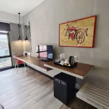 Since the hotel leans toward a modern industrial style, some fixtures and furniture have sharp edges. If you’re bringing a toddler, just keep an extra eye out.
