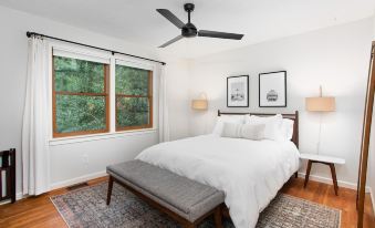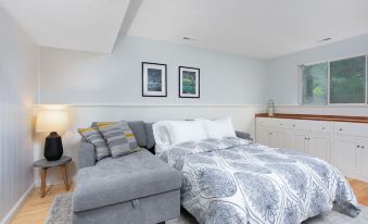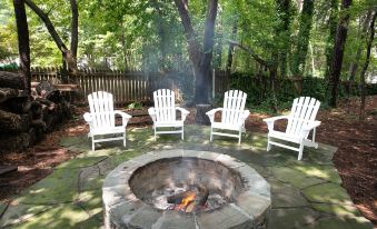 Guests have full, private access to the entire home—including both floors, backyard, covered porch, gas grill, and stone fire pit. Parking is available on the driveway and on-street. Self check-in with keypad ensures smooth arrivals anytime after 3 PM.