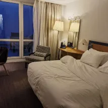 호텔 서비스는 전반적으로 만족스러웠습니다. 객실과 침구가 깨끗했고, 화장실과 샤워 부스가 넓어 사용하기 편리했습니다. 다만 주변에 식당이 많지 않아 호텔 내 레스토랑을 이용했는데, 음식 맛이 좋았고 생맥주 한 잔으로 피로를 풀기에 충분했습니다.