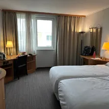 住宿方回覆: Dear Guest,Your recent experience at our hotel seems to have fallen below your expectations and for that, we sincerely apologize. We understand how important it is for our guests to feel comfortable and secure during their stay, as well as to receive the room they initially booked.Your observations about the issues you experienced with the room change and the noise are concerning. Our goal is always to provide a peaceful and welcoming environment, and we regret that we didn't meet this standard during your stay.Despite your initial dissatisfaction, we're glad to hear that you found the room environment to be satisfactory for individual guests or couples. Our team works diligently to maintain a high standard of cleanliness and comfort.In terms of the management, we aim to ensure smooth operations at all times, and we are sorry if this was not reflected during your visit. We understand how vital it is for our guests to have a seamless booking and check-in process.We appreciate you taking the time to share your feedback, as it is through such detailed observations that we can continuously improve our services. We hope to have the opportunity to welcome you back in the future and provide an experience that more closely aligns with our commitment to excellence.May you can contact us directly, so we can speak about the happens.Best regards.Antje BackhausNH Frankfurt Airport West