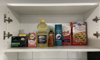 The building is new and we'll equipped with the large items. It has a larger fridge, full size stove, dish washer and washer dryer (pods and detergent provided). There is no kitchen table but a tv tray that works good. When I checked in there were no coffee cups, 1 spoon, 2 forks and like 8 knives. No tea towles, no mixing bowles, one tumbler glass and the bath towels were paper thin. I asked for the missing items which were (for the most part) provided but then he called me."troublesome" for asking for these and other things. All in all a great place for a short time but I was looking for something longer term and this was not the place. Nice neighborhood with plenty to do if you have kids but not great for the working man looking for an intermediate length of stay.
