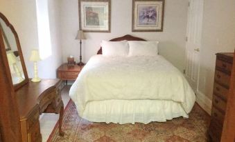 This is a spacious studio apartment. It occupies the entire basement of a 2 bedroom house (above), so it is quite large. The queen bedroom area is off by itself a bit and has a curtain for some privacy. The single bed has a partial room divider also. For those who need a desk space there is a very large desk, with lamp, electrical outlets and printer.
