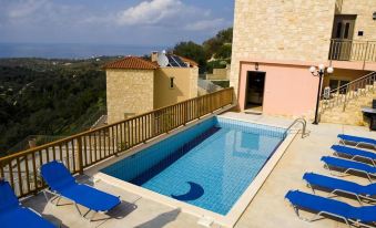 This villa is part of a group of 3 villas built on a steep hillside aside the village of Maroulas and completed in autumn,The surroundings are very peaceful and include many groves of olive and fruit trees.