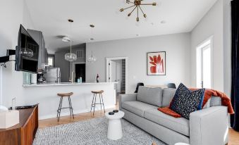 This spacious 1,000 square foot two-bedroom, two-full bathroom apartment with a modern, open floorplan, comes complete with two Queen beds and restful pull-out sleeper sofa. Relax with free, high-speed WiFi, full assortment of bath products, plush top mattress and modern tiled rainfall showerhead. Your kitchen comes loaded with all pots, pans, cooking utensils and every dish you'll need. Relax on your private balcony overlooking the charm of our historic neighborhood, enjoy two 40-inch HD Smart TV's, & fully stocked coffee bar to keep you going when you're "on the go."