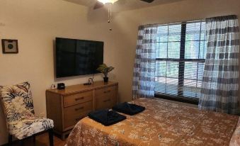 Hi, the host India, provides a beautiful, clean, quiet home environment. Big tvs in both bedrooms and living room....we spent some time on the screened patio, enjoying the rain and evening coolness.